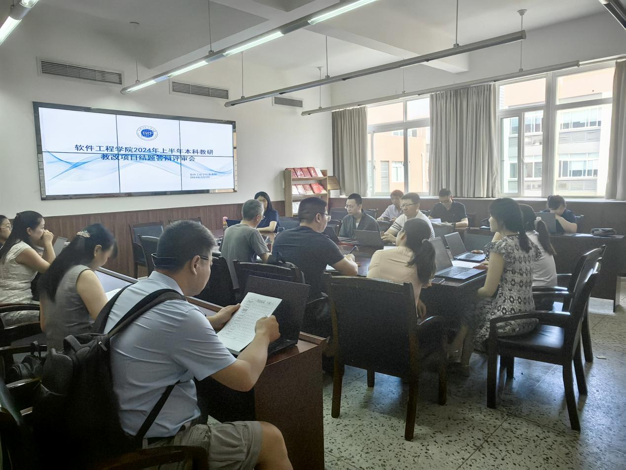 教学副院长主持,各教研室主任、教学指导委员会成员代表组成评审专家组出席会议,共计16位老师在现场进行了结题汇报。