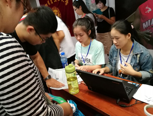 迎新工作持续了两天,在9月8日下午接近尾声,迎新的工作人员和老师依旧坚守岗位,本博彩交易所