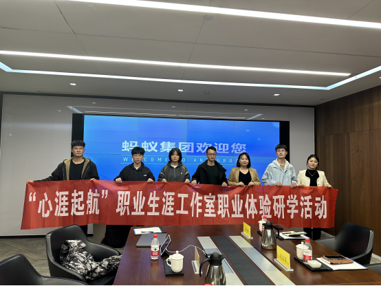 11月16日下午,博彩交易所 “心涯起航”职业生涯工作室前往蚂蚁集团成都分公司开展职业体验研学活动,此次活动由工作室负责人张俊锋带队,教师成员张澄、齐文琴及部分学生团队成员参加。