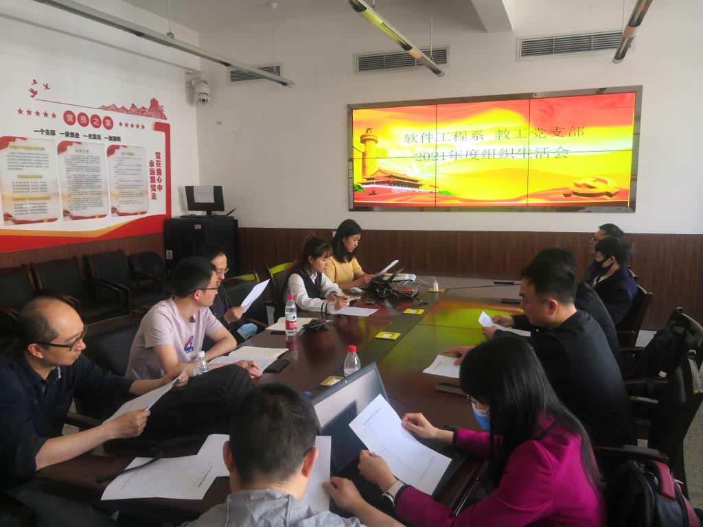 2022年3月17日,软件工程系党支部在信达楼B505会议室召开了2021年度组织生活会并开展了民主评议会,会议由系支部书记李蕊主持,软件工程系全体党员参加了会议。