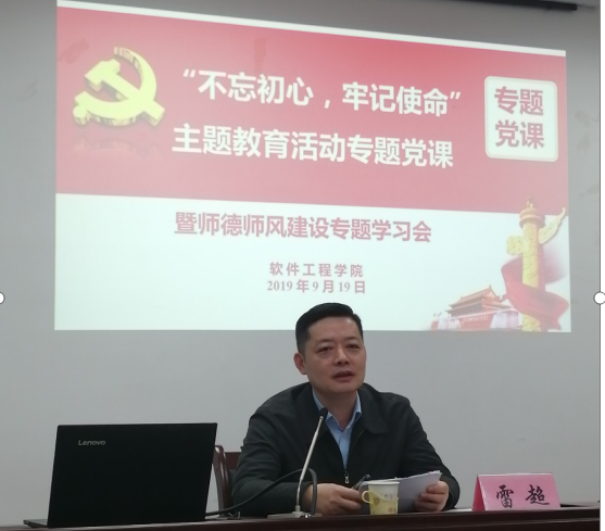 “不忘初心、牢记使命”主题教育专题党课暨师德师风建设专题学习会在双中心A502会议室举行,省纪委监委驻学校纪检监察组组长,学校党委副书记、纪委书记雷超同志出席会议并作专题报告,博彩交易所