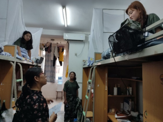 宿舍内,新生们有的在网上学习编程课程,有的在研读相关专业书籍,有的在学习《成都信息工程大学学生手册》,有的在聊天,有的在整理行李,还有刚刚从运动场上回来......新生们正在迅速进入大学生活。老师们详细询问新生到校后的适应情况,向同学们表达关心,解答新生关于入党、专业学习、评奖评优、加入社团组织等方面问题的疑惑。