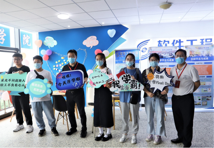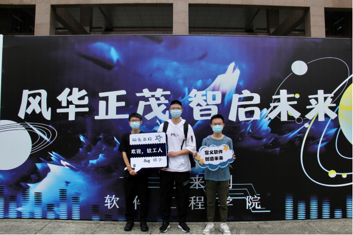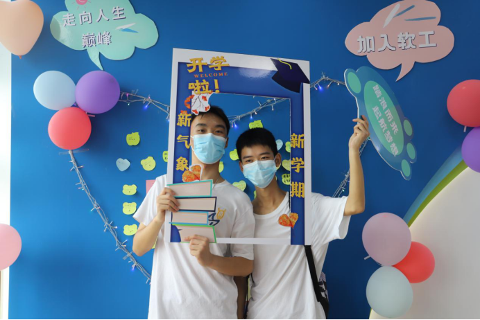 的师资力量、学生风采、校园文化生活、实践平台与成果,新同学还可以在爱心墙上留言,记录下自己的入学心情和开学期待。除此之外,温馨路标牌、爱心气球墙、防疫便利包、健康小贴士等等,营造了温馨的开学氛围,成为了新同学在大学生活第一天的“小确幸”。