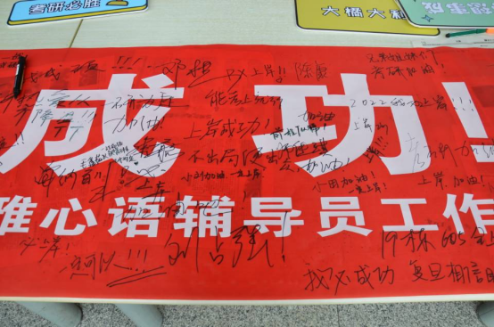工作站志愿者们发动现场成信学子为全校考研学子写下真诚祝福语,“亲爱的“考研人”你所付出的血汗,都将化为泉水浇灌梦想之花,没有什么是枉然的,没有什么是无用的,你要相信时光看得到每一份努力拼尽全力,放手一搏,今年我们一“研”为定,明年一定研一!”