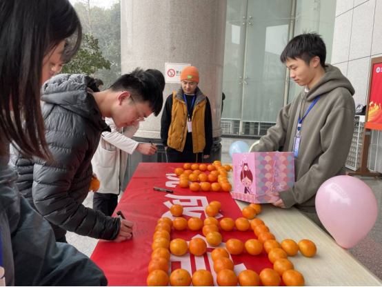 活动现场,“博雅心语”名辅导员工作室积极稳定考生心理状态,给予积极的心理暗示,小小的橘子和甜甜的糖果寓意“心想事成”和“大吉大利”,为成信学子们带来了温暖和祝愿,帮助考研学子坚定的,必胜的信念。