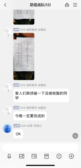 认真贯彻落实习近平总书记关于在疫情期间加强心理干预和疏导,有针对性做好人文关怀的重要指示精神。院领导、辅导员及时深入核酸检测现场、学生宿舍和食堂,了解学生的思想动态,收集学生对疫情防控工作的意见、建议,积极开展心理疏导。