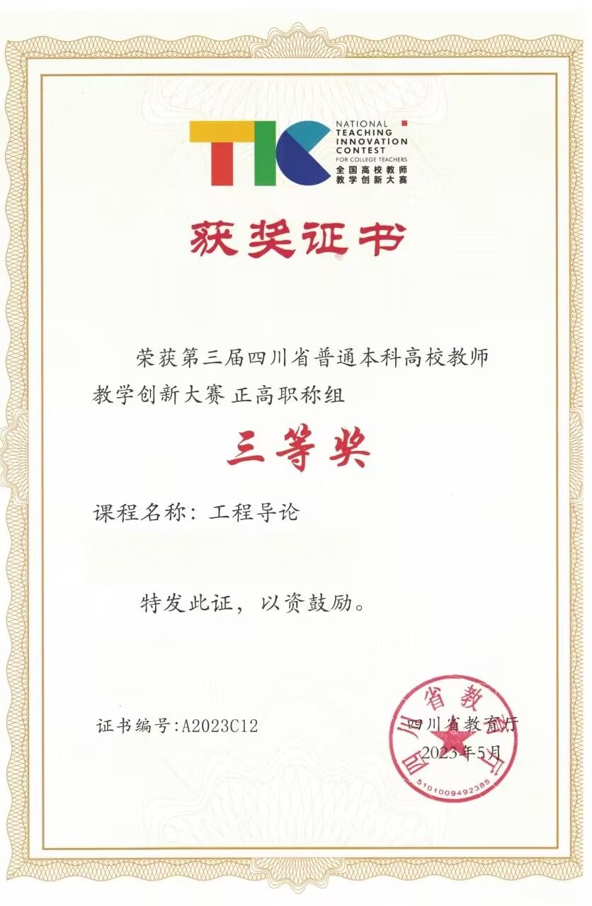 第三届四川省普通本科高校教师教学创新大赛(决赛)由四川省教育厅主办、四川省高等教育学会承办。博彩交易所工程导论教师作为学校代表队参加了比赛,经过前期网络评等环节的激烈角逐,工程导论教师团队获正高组三等奖。