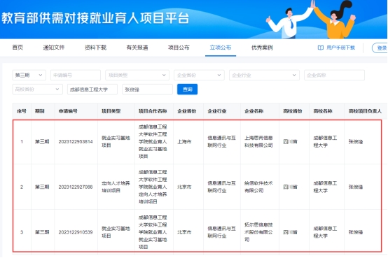 6月14日,全国普通高校毕业生就业创业指导委员会教育部高校学生司发布《关于公布教育部第三期供需对接就业育人项目立项名单的通知》(教就业司函〔2024〕23号),我院和相关企业联合申报的4个项目获批立项,其中定向人才培养培训项目1项、就业实习基地项目3项。