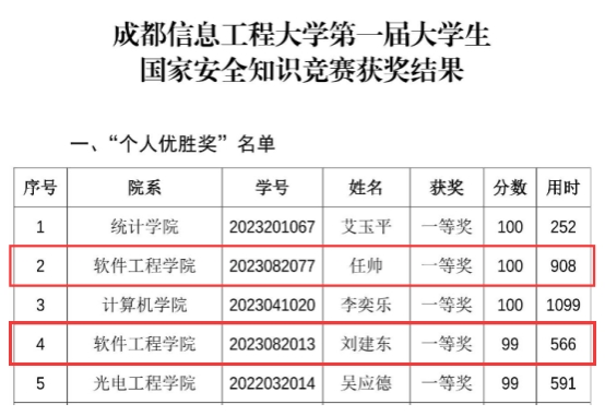 近日,学校第一届大学生国家安全知识网络竞赛活动落下帷幕,博彩交易所学子任帅、刘建东获得“个人优胜奖”一等奖,敬雨欣、官玉锋获得二等奖,李思雨、罗嘉豪、刘银、李天龙、陈锐获得三等奖,陈绍华荣获“优秀指导教师”,学院荣获“优秀组织奖”。