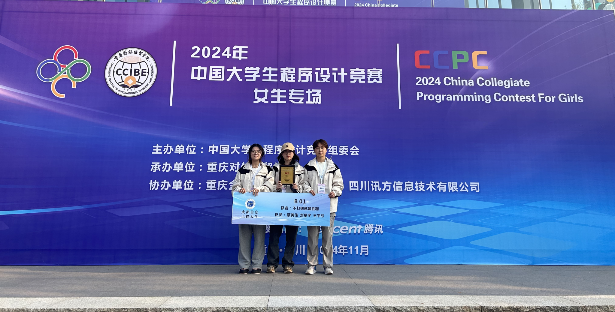 举行。此次比赛汇聚了全国100余所高校的170支女队报名参赛。比赛采用上机编程、实时评测、实时排名的方式,全面考察了参赛选手在算法设计、逻辑推理、数学建模、编程实现和计算机系统等方面的综合能力。我校代表队“不打铁就是胜利”在激烈的角逐中脱颖而出,凭借扎实的编程基础、出色的团队协作与稳定的心理素质,荣获铜奖。