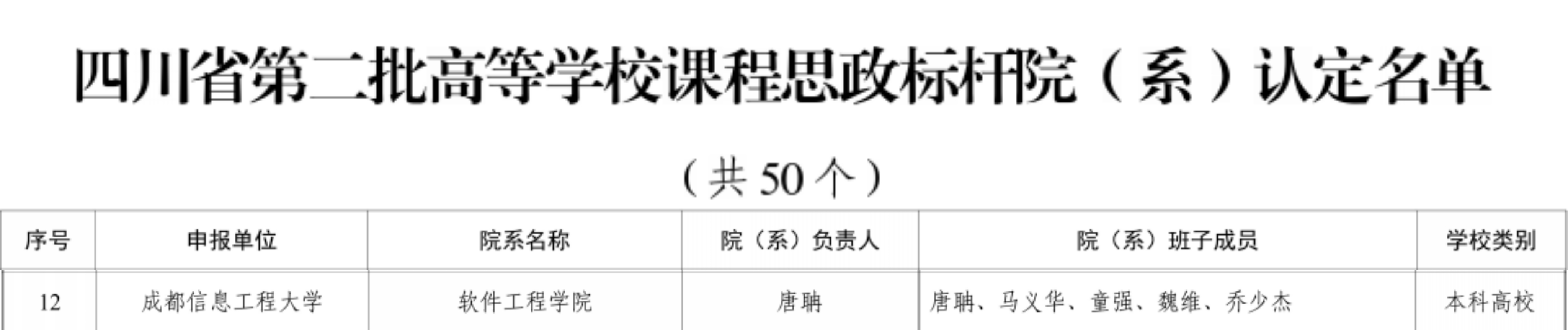 2025年4月9日,四川省教育厅正式公布了第二批高等学校课程思政标杆院(系)和课程思政典型案例认定名单。经各高校推荐、评审遴选等程序,四川省教育厅认定第二批高等学校课程思政标杆院(系)50个、课程思政典型案例110个。博彩交易所入选省级课程思政标杆院(系),教师魏维团队的《工程导论》课程入选省级课程思政典型案例。