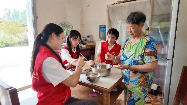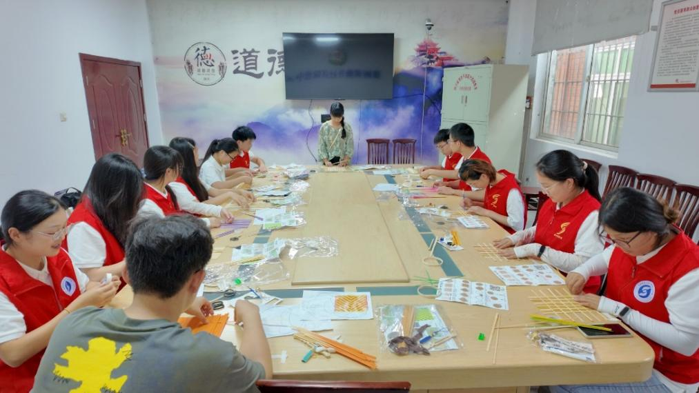 本次实践内容分为文化传承、科技赋能和民生关怀三个板块。在文化传承活动中,实践队特邀专业老师开展扎染和竹编技艺研学活动,通过“工艺解析+沉浸体验”模式,让志愿者在蓝白交织的扎染艺术与经纬交错的竹编技艺中,触摸中华文脉的千年传承。在科技赋能活动中,志愿者联合德新镇团委,围绕安全意识、科技创新、艺术素养等主题,为当地少年儿童科普气象防灾减灾知识,开展编程思想启蒙课程。在民生关怀活动中,开展了反诈宣传和暖心陪伴。志愿者针对当前基层面临的反诈意识薄弱问题,通过问卷、走访等形式了解村镇民众的反诈意识,开展反诈游园活动,200余名村民在趣味互动中提升防骗能力。志愿者拜访了三户空巢老人,开展了打扫卫生、共制午餐、陪伴谈心等服务,将“尊老敬老”的传统美德转化为可触可感的民生温度。