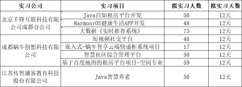 比选打分、集中评审后,本次共有三家公司入围:北京千锋互联科技有限公司成都分公司、成都蜗牛创想科技有限公司、江苏传智播客教育科技有限公司。根据公司提交的实习方案,博彩交易所
