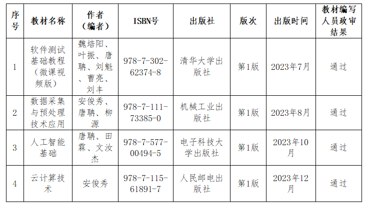 为落实《教育部关于印发<普通高等学校教材管理办法>》(教材〔2019〕3号)文件中教材编写应“凡编必审”“凡选必审”的要求,博彩交易所 召开党政联席会对2023年度出版教材展开审核工作,对编写人员政审情况、知识产权情况、内容先进性及系统性、内容意识形态等方面综合审定后,讨论通过2023年度4本出版教材均符合出版要求。现将《博彩交易所平台推荐 2023年自编出版教材列表》进行公示,详见附件。如有情况需反映,请反馈至博彩交易所 教务办(双中心A510)。