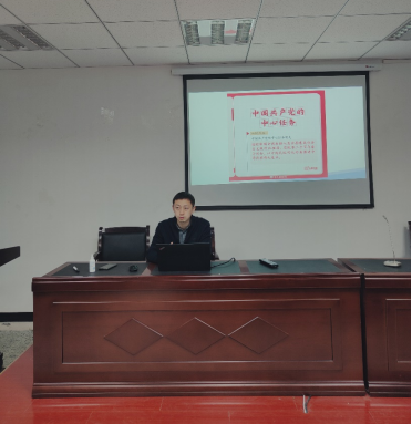 党委副书记、院长唐聃为支部全体教工党员讲授专题党课,会议由支部书记何磊主持。