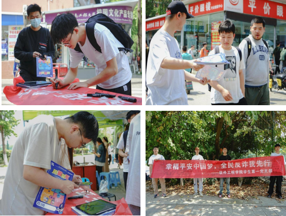 活动中,同志们采用案例讲解、宣发传单和号召签名等方式进行反诈宣传,意在号召同学们反诈观念、增强自我防范意识、争做反诈先锋。党员们利用自身软件专业知识围绕如何识别并防范软件相关的电信网络诈骗手段进行宣讲,引导师生坚持“三不一多”原则,防范电信网络诈骗,下载国家反诈中心APP,守住“血汗钱”。