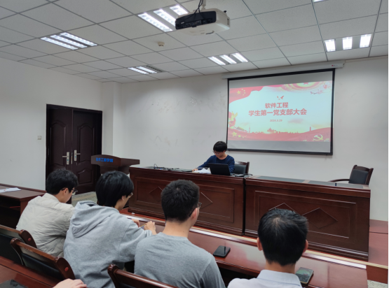 3月29日,学生第一党支部在信达楼A502召开党支部大会,紧扣学习《中国共产党党员网络行为规定》重要篇、深入学习《学习为民、善小而为》党课视频,会议由支部书记张澄主持。