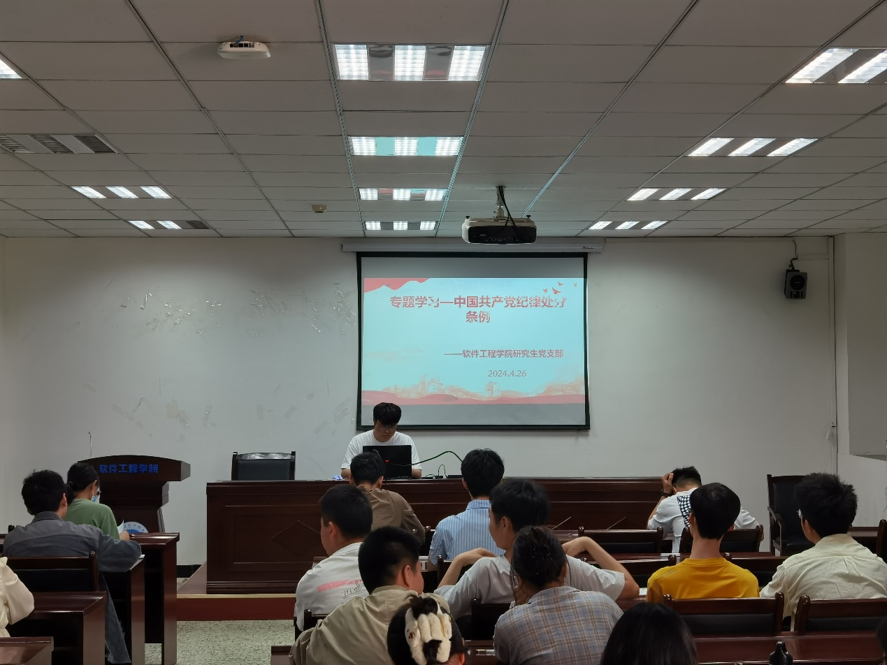 2024年4月26日下午,博彩交易所研究生党支部在双中心A502教室进行中国共产党纪律处分条例的专题学习。本次学习由党支部书记万娟带领支部全体在校党员参加,并由仁和同志主持。