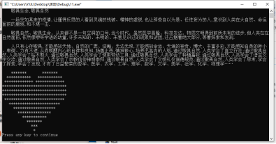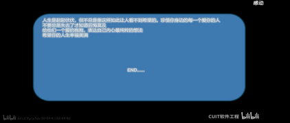 特色,同时又激发同学们创新思维和想象力,让软件也赋予生命的意义。通过代码的形式来呈现出一个一个感人的字符,表达了敬畏生命的主题同时也体现了代码并非是没有生命符号,而是我们双手敲打创造出来的另一种值得尊敬的生命,