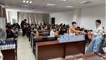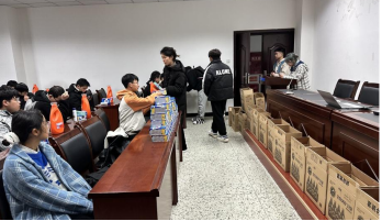 精心准备的洗衣液、牙膏等实用生活用品分发同学们,传递情谊,增添陪伴。