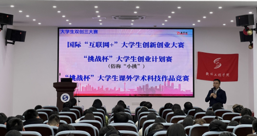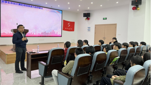 宣讲会伊始,胡培老师向同学们介绍了学科竞赛的重要性,并对王钊仙老师的到来表示欢迎!紧接着由王钊仙老师对大学生创新创业大赛进行详细的解析。王钊仙老师从大学生参加创新创业大赛的意义讲起,并通过优秀学长学姐的例子来证明大赛的意义,使听讲的同学受益匪浅。