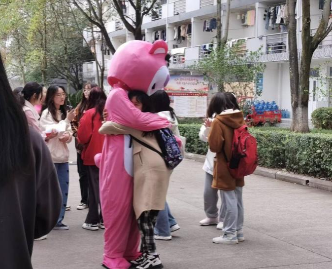 温暖的抱抱传递着温暖,治愈着每一个受伤的心灵,在春光和煦的校园里,希望“草莓熊”的抱抱能够让同学们拾起积极向上的动力,学会与负面情绪相处。
