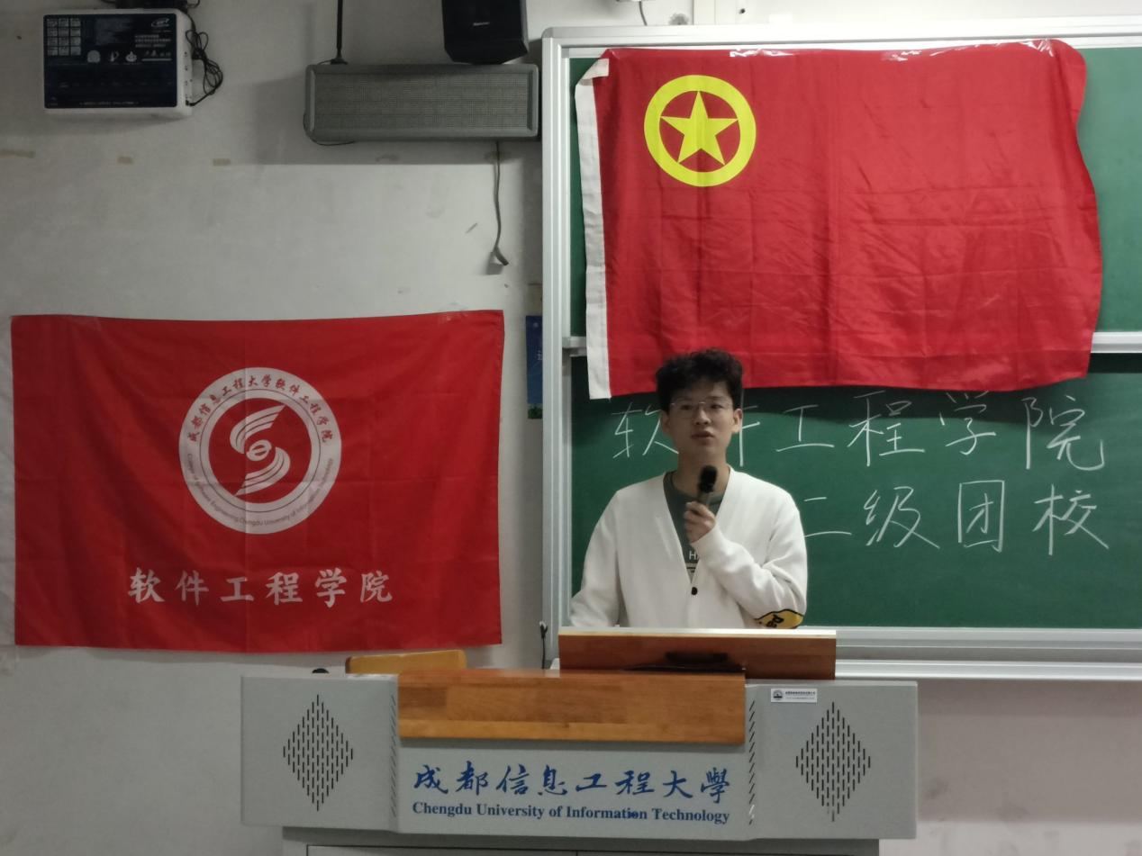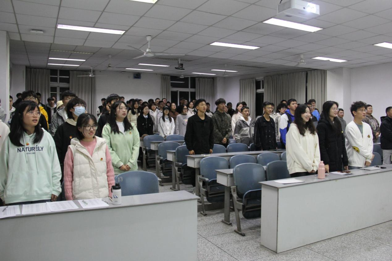 团课起始,全体与会人员齐唱团歌。在整齐洪亮的歌声后,陈宇同学开始讲解此次团课。