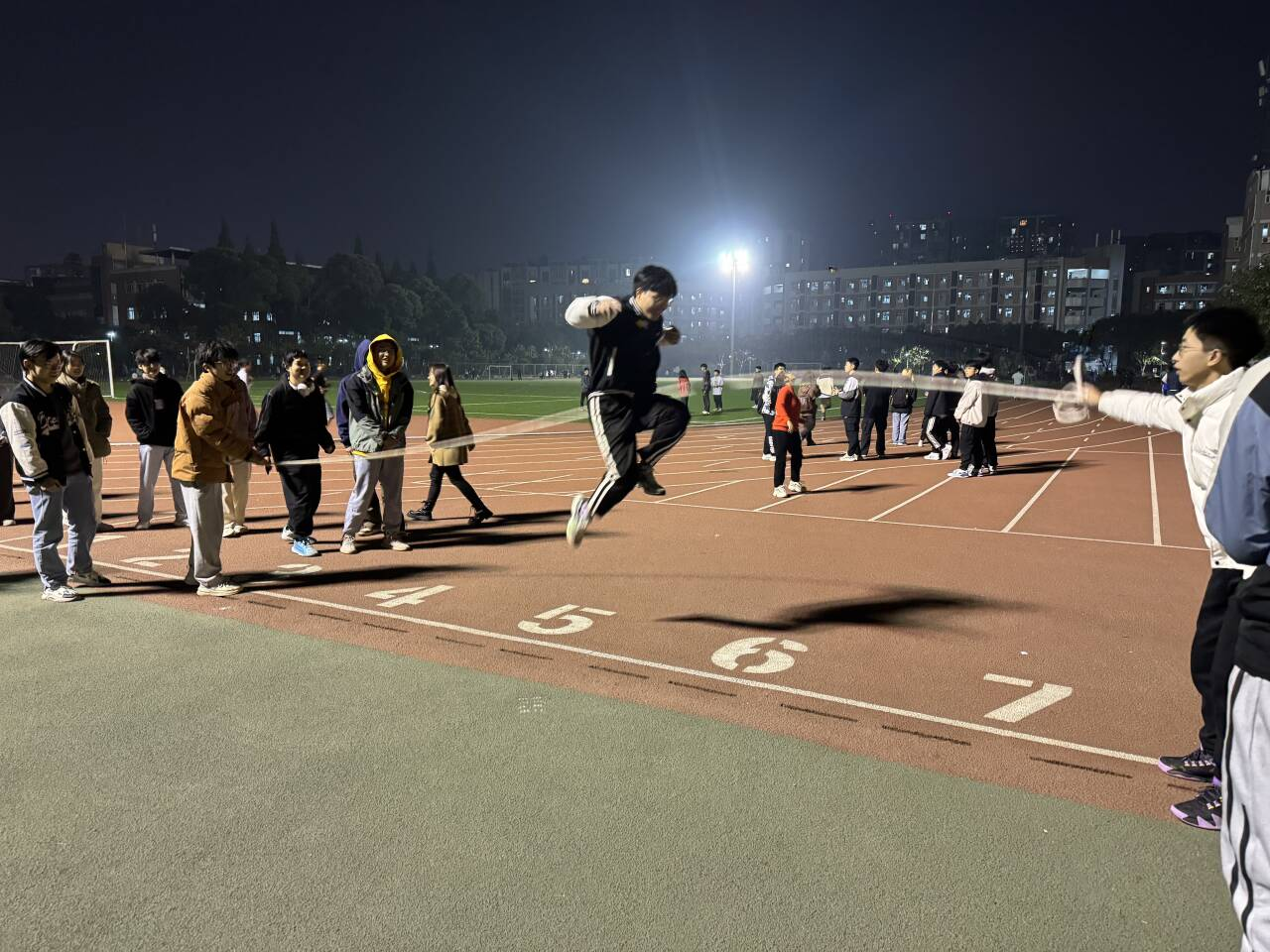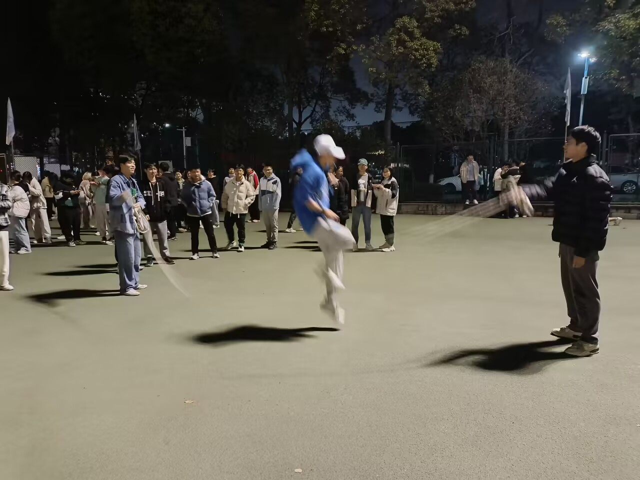 跳大绳比赛作为一项传统体育项目,吸引了众多学生的参与。在比赛中,同学们身姿矫健,跳跃自如,各种精彩瞬间不断上演。他们或单人跳,或多人配合,每一次跃起都凝聚了同学们的汗水和努力。