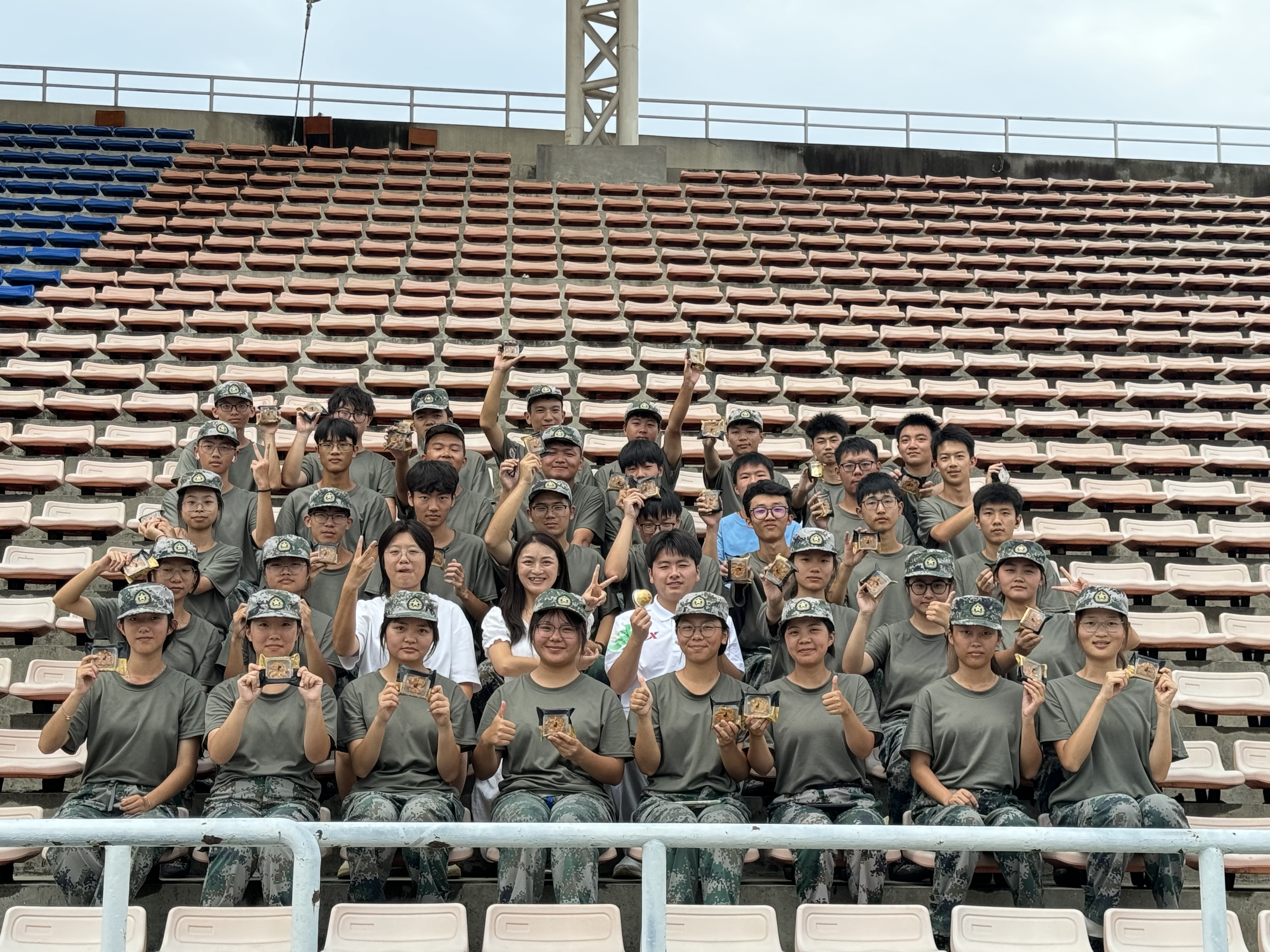 2024级辅导员和班导生来到学生军训现场,将精心准备的中秋月饼发放给2024级全体新生。
