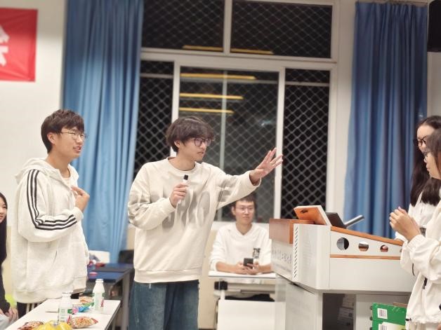 在活跃的讨论之后,胡浩鑫与大家分享了“75年 我们正年轻”的主题视频,带领同学们重温了那些珍贵的历史瞬间,并以此激励同学们,不负青春,为青春的中国再创辉煌。