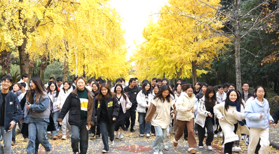 12月5日,空间信息与数字技术专业(以下简称空信专业)的班委组织了一场合影活动,辅导员齐文琴及空信241、241班班导生、全体同学齐聚于校园内著名的打卡地——银杏大道,开展了一场充满欢乐与温情、别开生面的集体拍照活动。