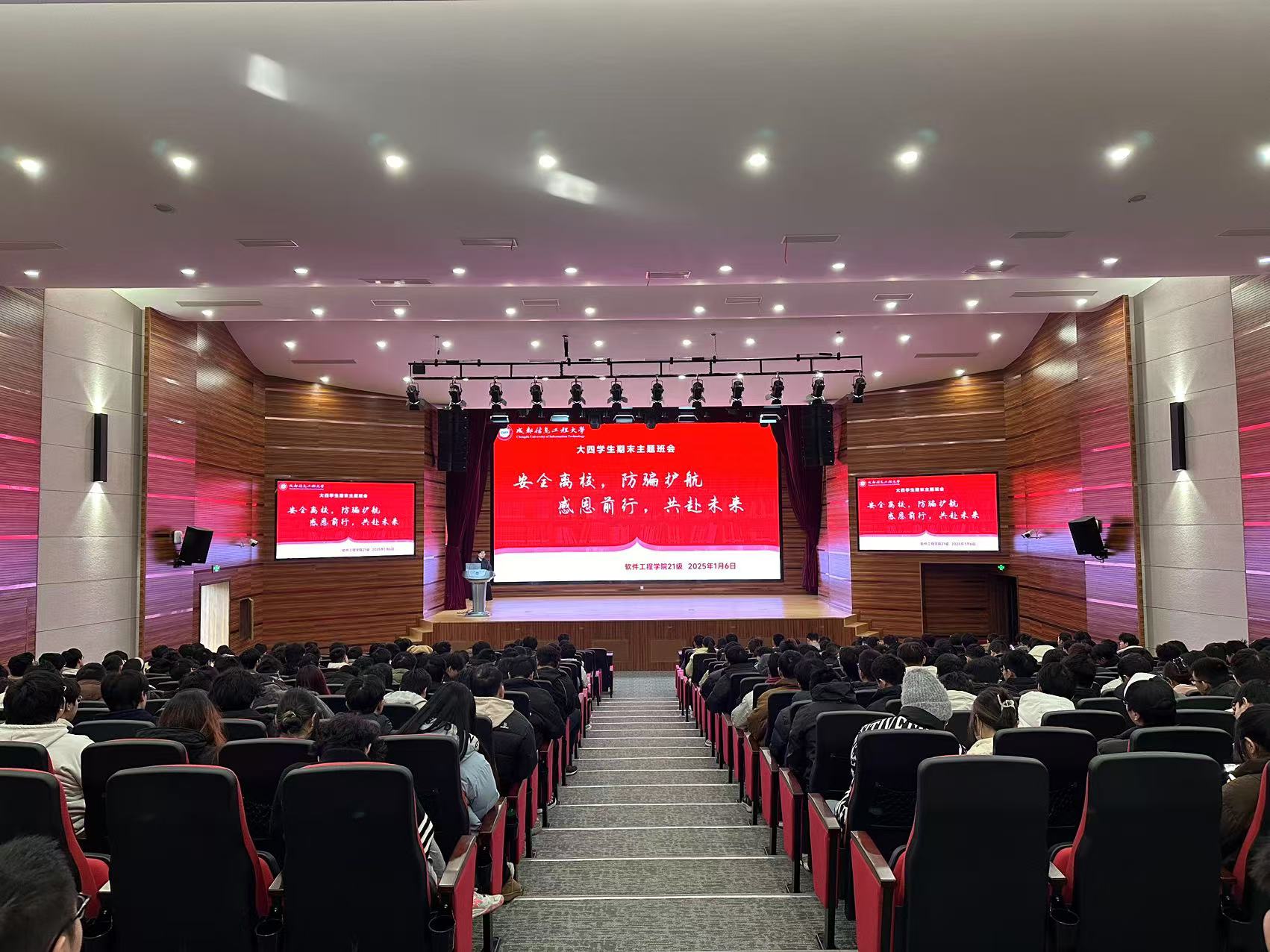 随着毕业季的临近,为了帮助同学们更好地总结大学生活,明确毕业目标,加强安全意识,并培养感恩之心,近日,博彩交易所2021级毕业班主题班会于2025年1月6日在成信礼堂圆满举行。本次班会由毕业班辅导员邵玉节、万娟主持,全体毕业班同学参加。